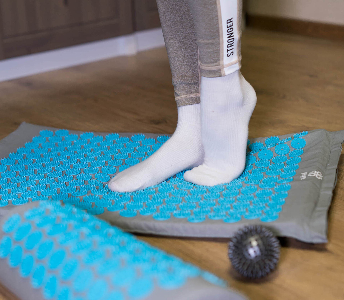 При эксплуатации вес вашего тела равномерно распределяется по всей поверхности коврика, стимулируя многочисленные "точки акупрессуры".