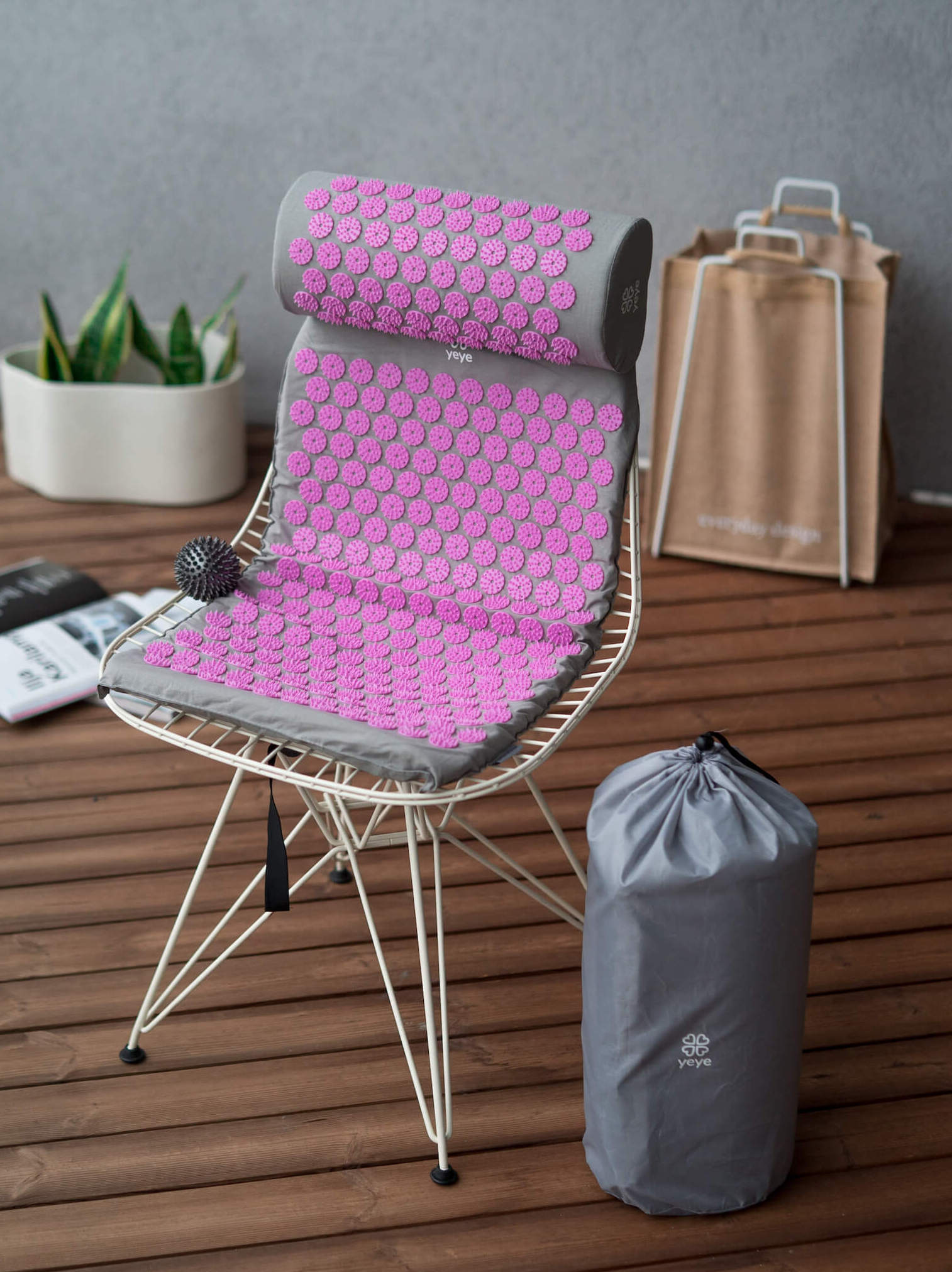 Аппликатор Кузнецова. Массажный набор yeye для снятия мышечных напряжений, болей головы и шейного отдела. В комплект набора входят акупунктурный коврик и валик. Сумка для переноски и игольчатый мячик - в подарок! 100% экологичные, гипоаллергенные материалы: пенный наполнитель, АБС-пластик и натуральный хлопок.
